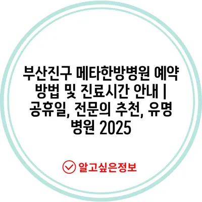 ✅ 부산진구 메타한방병원의 진료시간과 예약 방법을 간편하게 확인해 보세요.