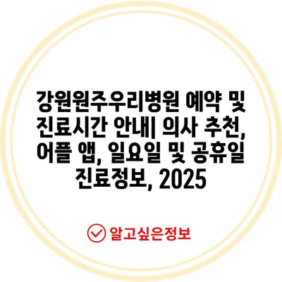 강원원주우리병원 예약 및 진료시간 공지| 의사 추천, 어플 앱, 일요일 및 공휴일 진료정보, 2025
