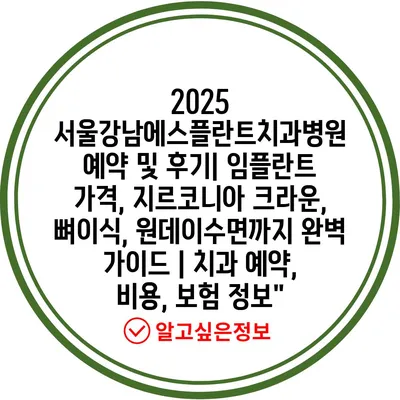 2025 서울강남에스플란트치과병원 예약 및 후기| 임플란트 가격, 지르코니아 크라운, 뼈이식, 원데이수면까지 완벽 설명서 | 치과 예약, 비용, 보험 정보에 대해 자주 묻는 질문 TOP 5