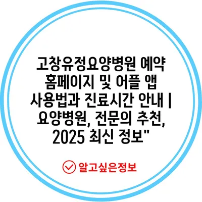 ✅ 고창유정요양병원의 예약 방법과 진료 시간을 자세히 알아보세요.