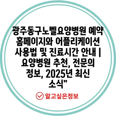 광주동구노벨요양병원 예약 홈페이지와 어플리케이션 사용법 및 진료시간 안내 | 요양병원 추천, 전문의 정보, 2025년 최신 소식”