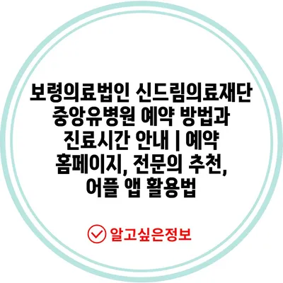 ✅ 보령의료법인 신드림의료재단 중앙유병원 예약 방법을 지금 바로 알아보세요.