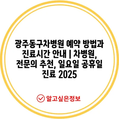 ✅ 광주동구차병원 예약 방법을 상세히 알아보세요.