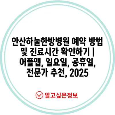 안산하눌한방병원 예약 방법 및 진료시간 확인하기 | 어플앱, 일요일, 공휴일, 전문가 추천, 2025 에 대해 자주 묻는 질문 TOP 5