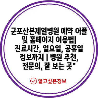 ✅ 군포산본제일병원의 진료시간과 예약 방법을 자세히 알아보세요.