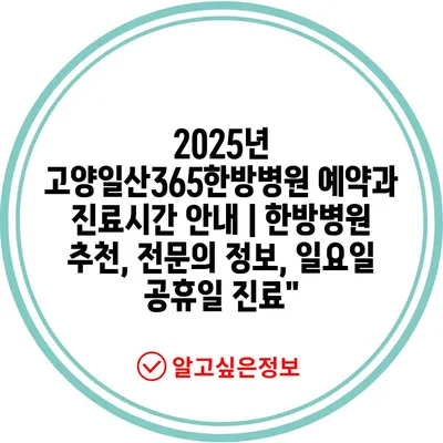 2025년 고양일산365한방병원 예약과 진료시간 공지 | 한방병원 추천, 전연락 정보, 일요일 공휴일 진료” 에 대해 자주 묻는 질문 TOP 5