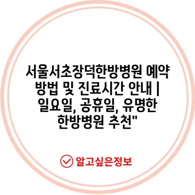 ✅ 서울서초장덕한방병원 예약 방법을 지금 바로 알아보세요!