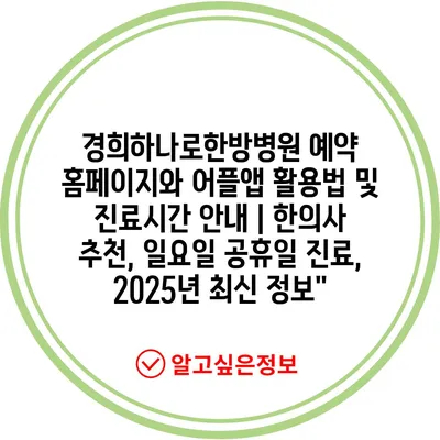 경희하나로한방병원 예약 홈페이지와 어플앱 활용법 및 진료시간 공지 | 한의사 추천, 일요일 공휴일 진료, 2025년 최신 정보” 에 대해 자주 묻는 질문 TOP 5