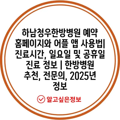✅ 하남청우한방병원의 예약 시스템과 진료 정보를 자세히 알아보세요.
