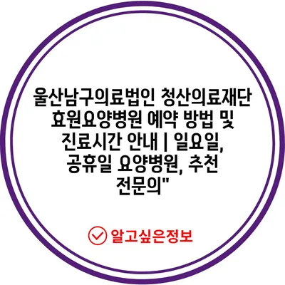 울산남구의료법인 청산의료재단 효원요양병원 예약 방법 및 진료시간 공지 | 일요일, 공휴일 요양병원, 추천 전연락” 에 대해 자주 묻는 질문 TOP 5