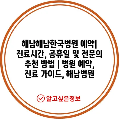 ✅ 해남해남한국병원의 진료시간과 예약 방법을 자세히 알아보세요.