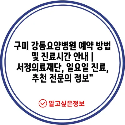 구미 강동요양병원 예약 방법 및 진료시간 공지 | 서정의료재단, 일요일 진료, 추천 전연락 정보에 대해 자주 묻는 질문 TOP 5