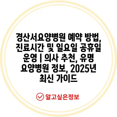 경산서요양병원 예약 방법, 진료시간 및 일요일 공휴일 운영 | 의사 추천, 유명 요양병원 정보, 2025년 최신 설명서 에 대해 자주 묻는 질문 TOP 5