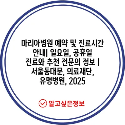 마리아병원 예약 및 진료시간 공지| 일요일, 공휴일 진료와 추천 전연락 정보 | 서울동대문, 의료재단, 유명병원, 2025