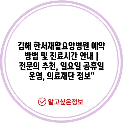 김해 한서재활요양병원 예약 방법 및 진료시간 공지 | 전연락 추천, 일요일 공휴일 운영, 의료재단 정보에 대해 자주 묻는 질문 TOP 5