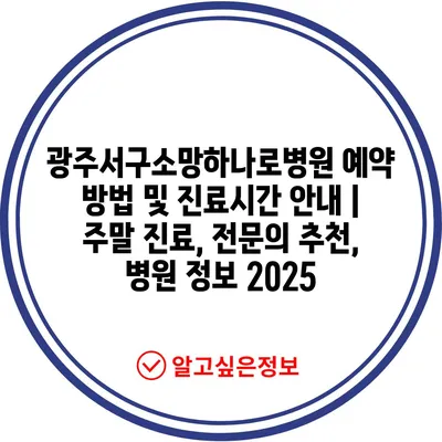 ✅ 광주서구소망하나로병원의 진료시간과 예약 방법을 알아보세요.