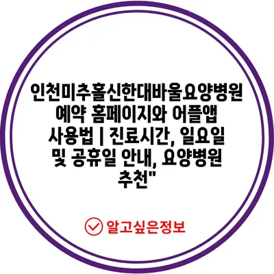 ✅ 인천미추홀신한대바울요양병원의 예약 절차를 쉽게 알아보세요.