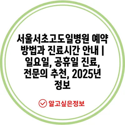 서울서초고도일병원 예약 방법과 진료시간 공지 | 일요일, 공휴일 진료, 전연락 추천, 2025년 정보 에 대해 자주 묻는 질문 TOP 5
