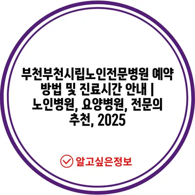 ✅ 부천시립노인전문병원의 예약 방법을 지금 바로 알아보세요!