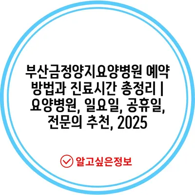 부산금정양지요양병원 예약 방법과 진료시간 총정리 | 요양병원, 일요일, 공휴일, 전연락 추천, 2025 에 대해 자주 묻는 질문 TOP 5