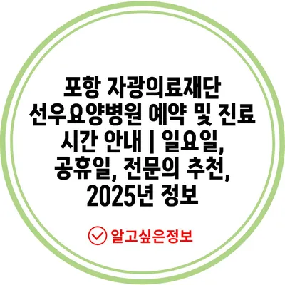 포항 자광의료재단 선우요양병원 예약 및 진료 시간 공지 | 일요일, 공휴일, 전연락 추천, 2025년 정보 에 대해 자주 묻는 질문 TOP 5