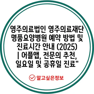 영주의료법인 영주의료재단 명품요양병원 예약 방법 및 진료시간 공지 (2025) | 어플앱, 전연락 추천, 일요일 및 공휴일 진료”에 대해 자주 묻는 질문 TOP 5