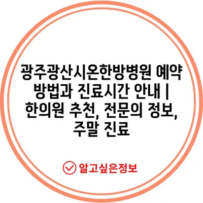 ✅ 광주광산시온한방병원의 예약 방법과 진료 정보를 자세히 알아보세요.