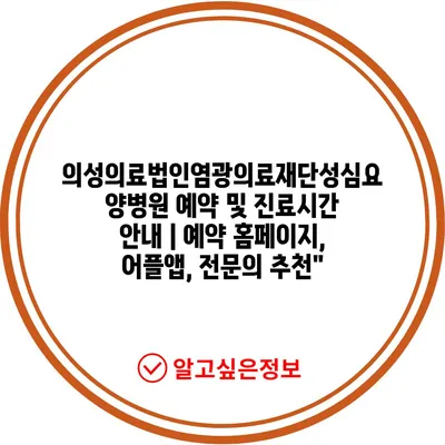 의성의료법인염광의료재단성심요양병원 예약 및 진료시간 공지 | 예약 홈페이지, 어플앱, 전연락 추천