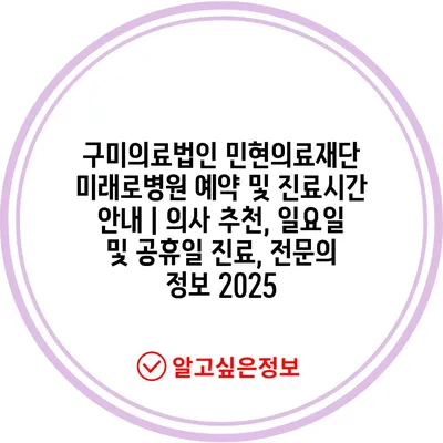 구미의료법인 민현의료재단 미래로병원 예약 및 진료시간 공지 | 의사 추천, 일요일 및 공휴일 진료, 전연락 정보 2025에 대해 소개합니다.