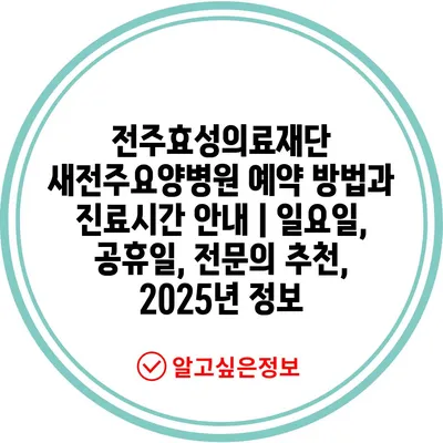 전주효성의료재단 새전주요양병원 예약 방법과 진료시간 공지 | 일요일, 공휴일, 전연락 추천, 2025년 정보 에 대해 자주 묻는 질문 TOP 5