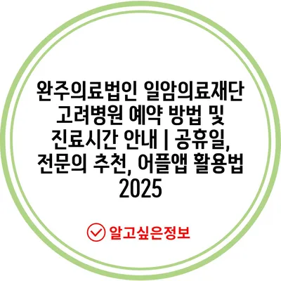 완주의료법인 일암의료재단 고려병원 예약 방법 및 진료시간 공지 | 공휴일, 전연락 추천, 어플앱 활용법 2025에 대해 자주 묻는 질문 TOP 5