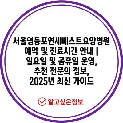 서울영등포연세베스트요양병원 예약 및 진료시간 공지 | 일요일 및 공휴일 운영, 추천 전연락 정보, 2025년 최신 설명서 에 대해 자주 묻는 질문 TOP 5