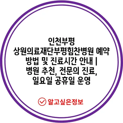 인천부평 상원의료재단부평힘찬병원 예약 방법 및 진료시간 공지 | 병원 추천, 전연락 진료, 일요일 공휴일 운영 에 대해 자주 묻는 질문 TOP 5