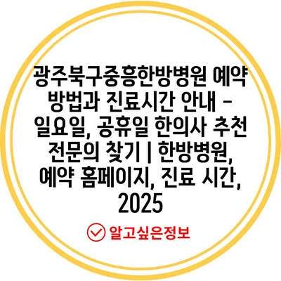 ✅ 광주북구중흥한방병원의 진료시간과 예약 방법을 지금 바로 알아보세요.