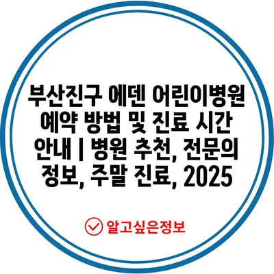 부산진구 에덴 어린이병원 예약 방법 및 진료 시간 공지 | 병원 추천, 전연락 정보, 주말 진료, 2025 에 대해 자주 묻는 질문 TOP 5