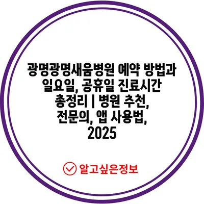 광명광명새움병원 예약 방법과 일요일, 공휴일 진료시간 총정리 | 병원 추천, 전연락, 앱 사용법, 2025