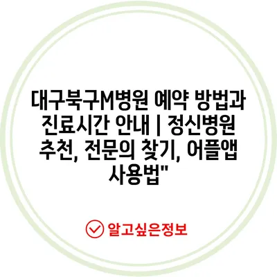대구북구M병원 예약 방법과 진료시간 안내 | 정신병원 추천, 전문의 찾기, 어플앱 사용법”