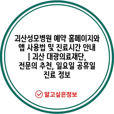 ✅ 괴산성모병원의 진료시간과 예약 방법을 자세히 알아보세요.