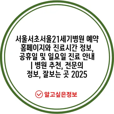 서울서초서울21세기병원 예약 홈페이지와 진료시간 정보, 공휴일 및 일요일 진료 공지 | 병원 추천, 전연락 정보, 잘보는 곳 2025 에 대해 자주 묻는 질문 TOP 5