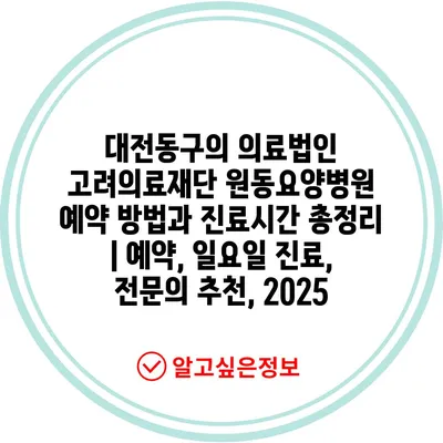 대전동구의 의료법인 고려의료재단 원동요양병원 예약 방법과 진료시간 총정리 | 예약, 일요일 진료, 전연락 추천, 2025에 대해 알아보겠습니다.