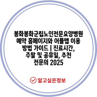 봉화봉화군립노인전문요양병원 예약 홈페이지와 어플앱 이용 방법 설명서 | 진료시간, 주말 및 공휴일, 추천 전연락 2025에 대해 소개합니다.