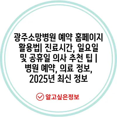 광주소망병원 예약 홈페이지 활용법| 진료시간, 일요일 및 공휴일 의사 추천 팁 | 병원 예약, 의료 정보, 2025년 최신 정보 에 대해 자주 묻는 질문 TOP 5