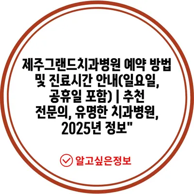 제주그랜드치과병원 예약 방법 및 진료시간 공지(일요일, 공휴일 포함) | 추천 전연락, 유명한 치과병원, 2025년 정보” 에 대해 자주 묻는 질문 TOP 5