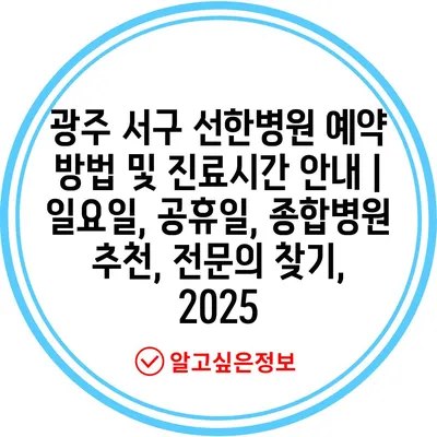 ✅ 광주 서구 선한병원 예약 방법과 진료시간을 지금 바로 알아보세요!