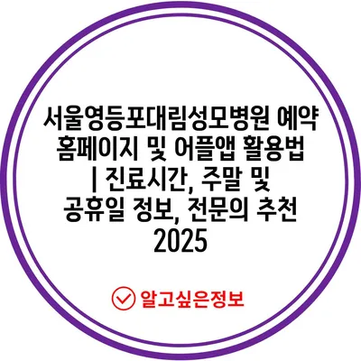 ✅ 서울영등포대림성모병원의 예약 방법과 팁을 지금 바로 알아보세요.