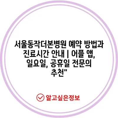 ✅ 서울동작더본병원의 예약 방법과 진료시간을 알아보세요.