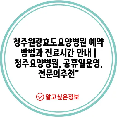 청주원광효도요양병원의 예약방법과 진료시간을 지금 바로 확인하세요!