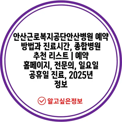 안산근로복지공단안산병원 예약 방법과 진료시간, 종합병원 추천 리스트 | 예약 홈페이지, 전연락, 일요일 공휴일 진료, 2025년 정보에 대해 자주 묻는 질문 TOP 5