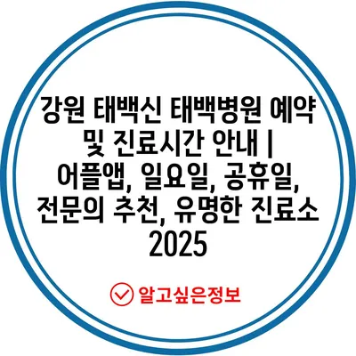 ✅ 태백병원의 진료시간과 예약 방법을 지금 확인해 보세요.