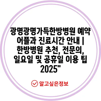 광명광명가득한방병원 예약 어플과 진료시간 공지 | 한방병원 추천, 전연락, 일요일 및 공휴일 이용 팁 2025″ 에 대해 자주 묻는 질문 TOP 5